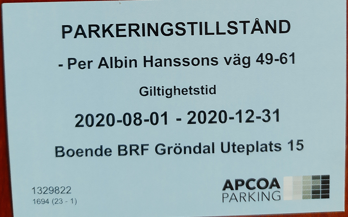Vidare vill vi påminna samtliga som har en garageplats eller utomhusparkering för personbil att ha sitt parkeringstillstånd väl synligt i framrutan för att undvika eventuell kontrollavgift när Europark gör sina kontroller av parkeringsplatserna.