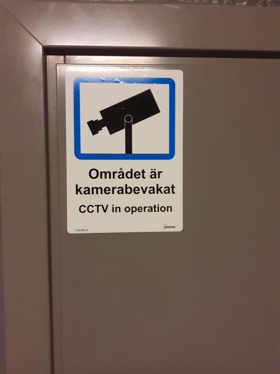 Nu är kameraövervakningen installerad i vårt garage och skyltarna är uppe, se bild nedan.
